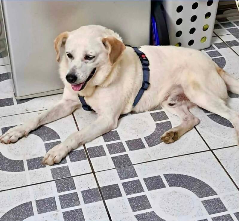 Histoire : Retrouvé abandonné dans la rue, avec sa cicatrice au cou, il semble avoir vécu toute sa vie à l'attache..