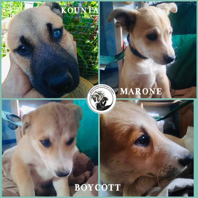 Histoire : Marley est l'un des 3 jeunes chiots récupérés affamés à la Réunion. Il s'agissait de 3 petits mâles de 2 mois et demi errants en bord de route, heureusement recueillis par notre bénévole.